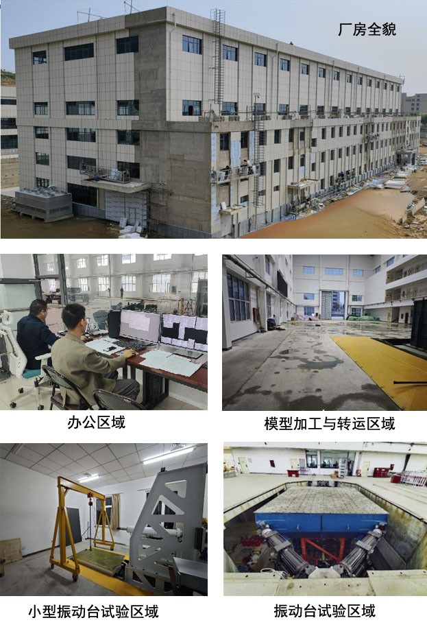 實驗室內部設置四大功能區域,分別是:模型加工與轉運區域,振動臺試驗區域,擬靜力試驗區域,辦公區