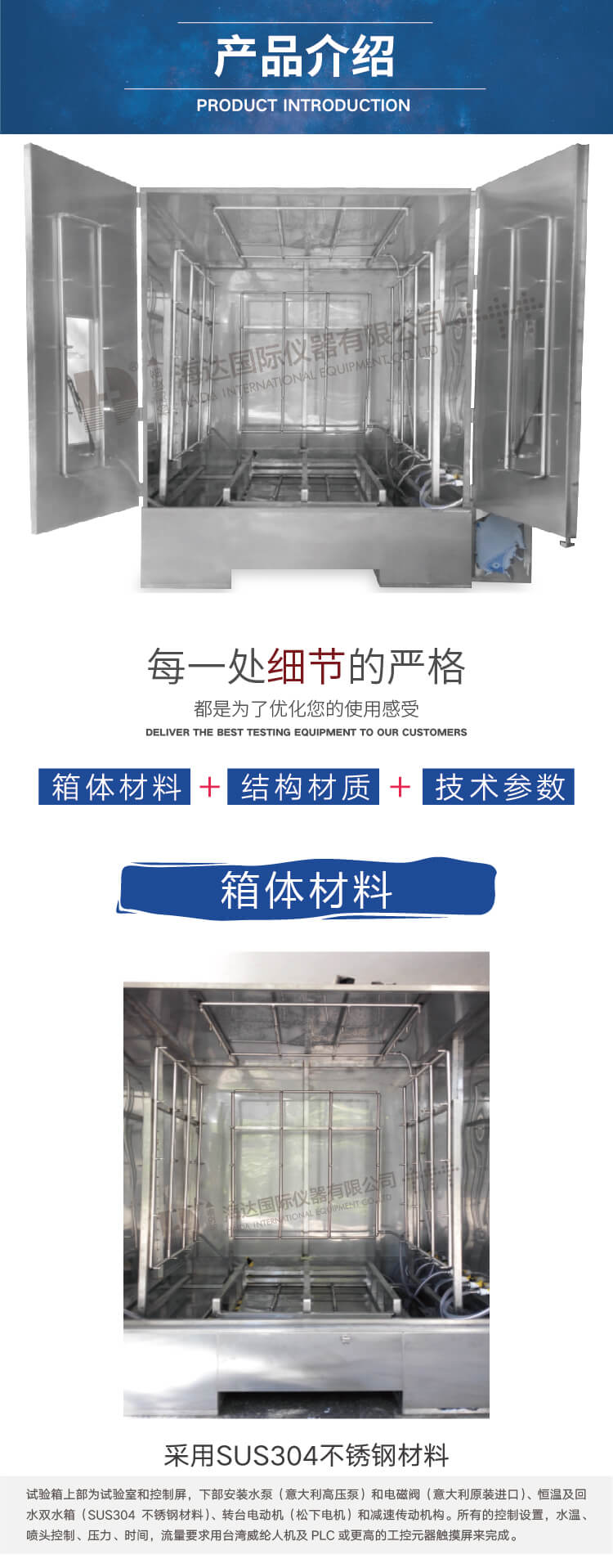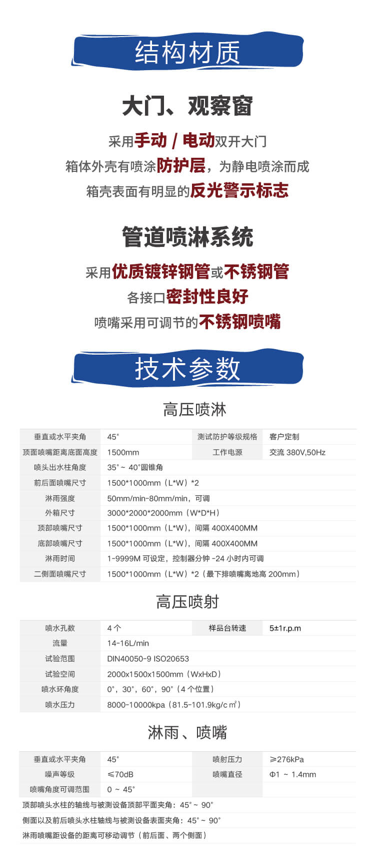 5、滴雨試驗室內(nèi)部尺寸:W2500×D1500×H2000mm ;