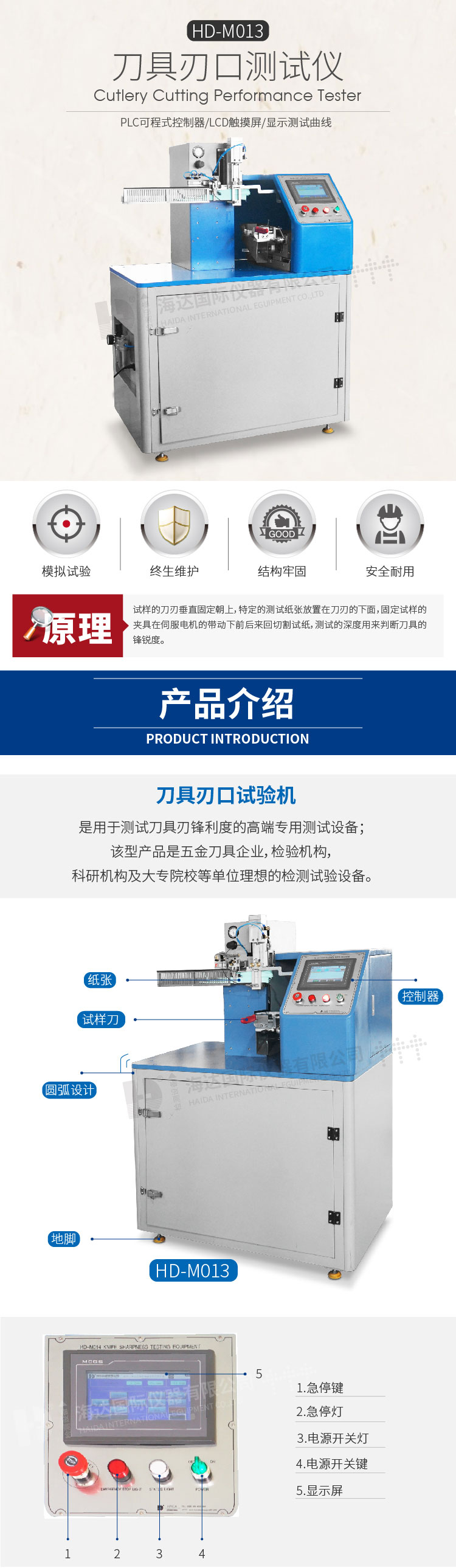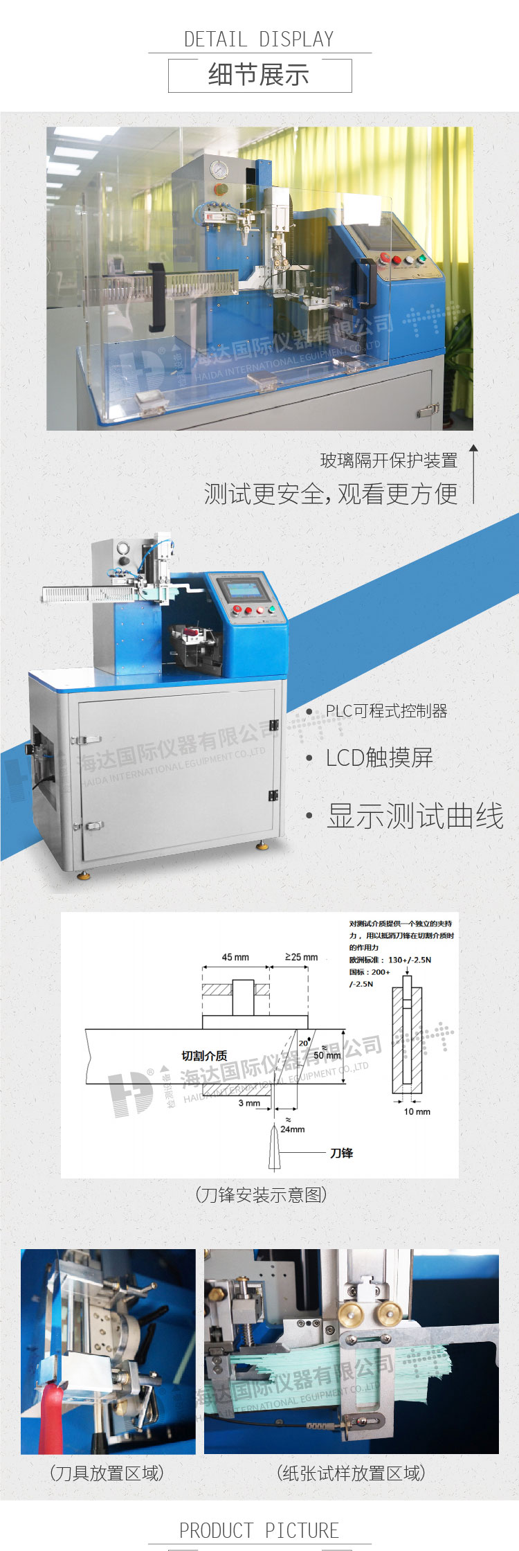 HD-M013刀鋒銳利度測試儀,測試刀具的鋒利度值,PLC微電腦程序控制,操作簡單,穩(wěn)定準確,LCD觸摸屏,操作界面友好,使用簡便,具有割點自動定位、刀具自動復位切割功能,實時顯示刀具切斷測試材料所需的力值及切斷力曲線。