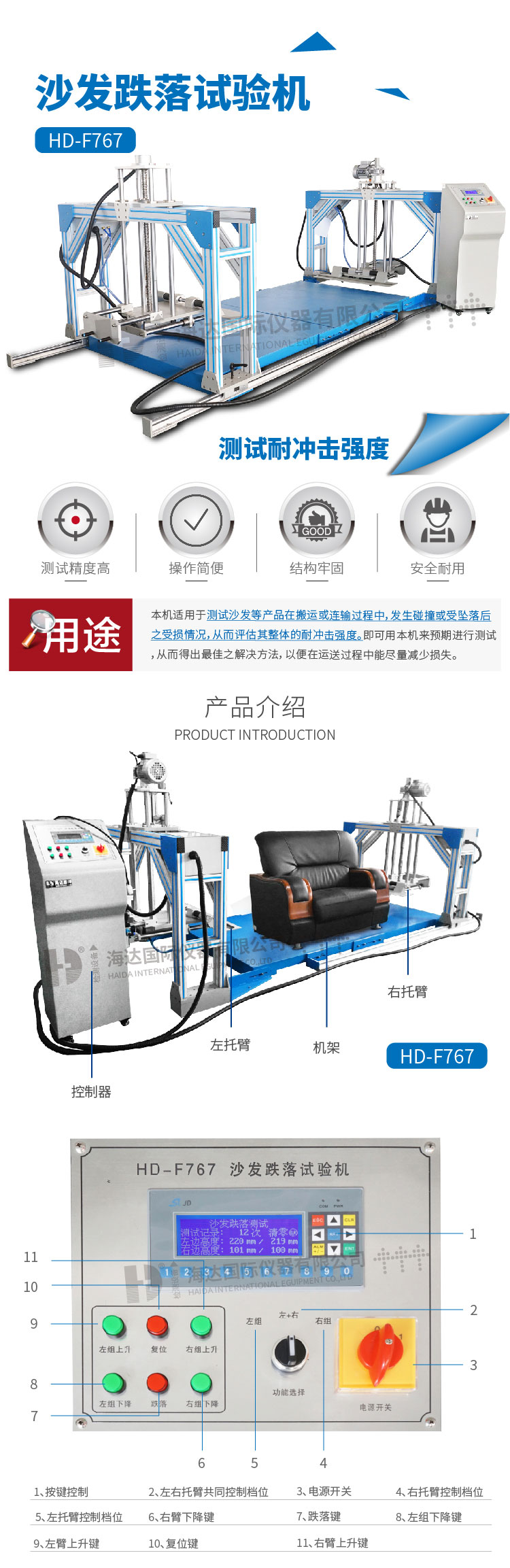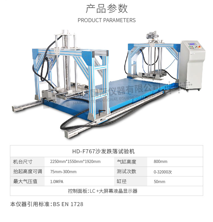 沙發(fā)跌落試驗儀評估沙發(fā)跌落后木架是否損壞。