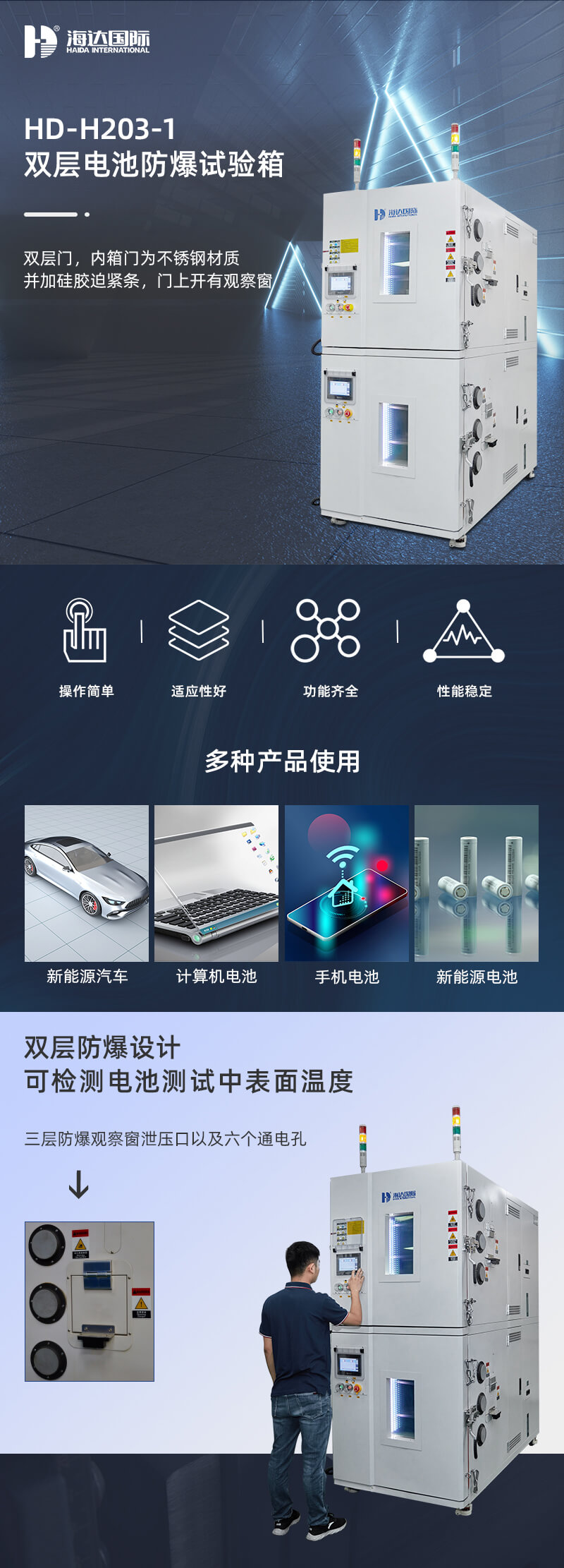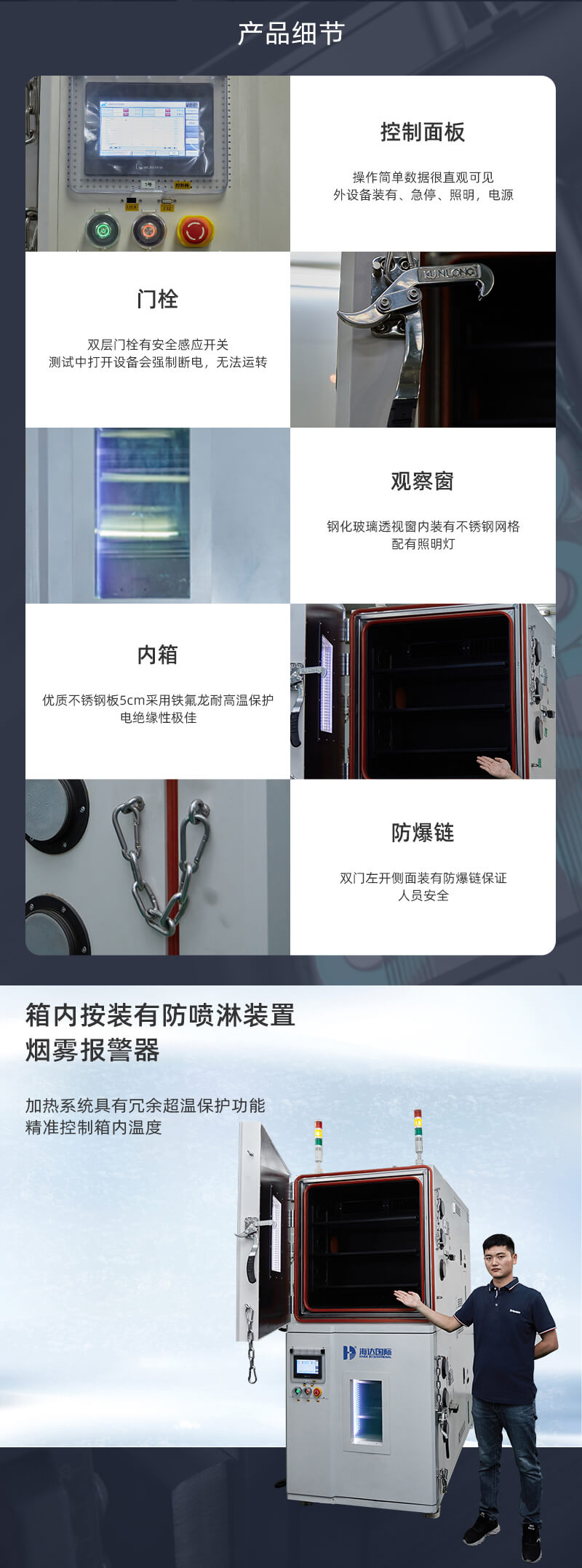 電池防爆試驗(yàn)箱主要用于電池進(jìn)行過(guò)充過(guò)放,充放電測(cè)試中,將電池置于防爆箱中,外接充放電測(cè)試儀中,為操作人員及儀器進(jìn)行保護(hù),本機(jī)測(cè)試箱體可根據(jù)測(cè)試需求進(jìn)行定做。